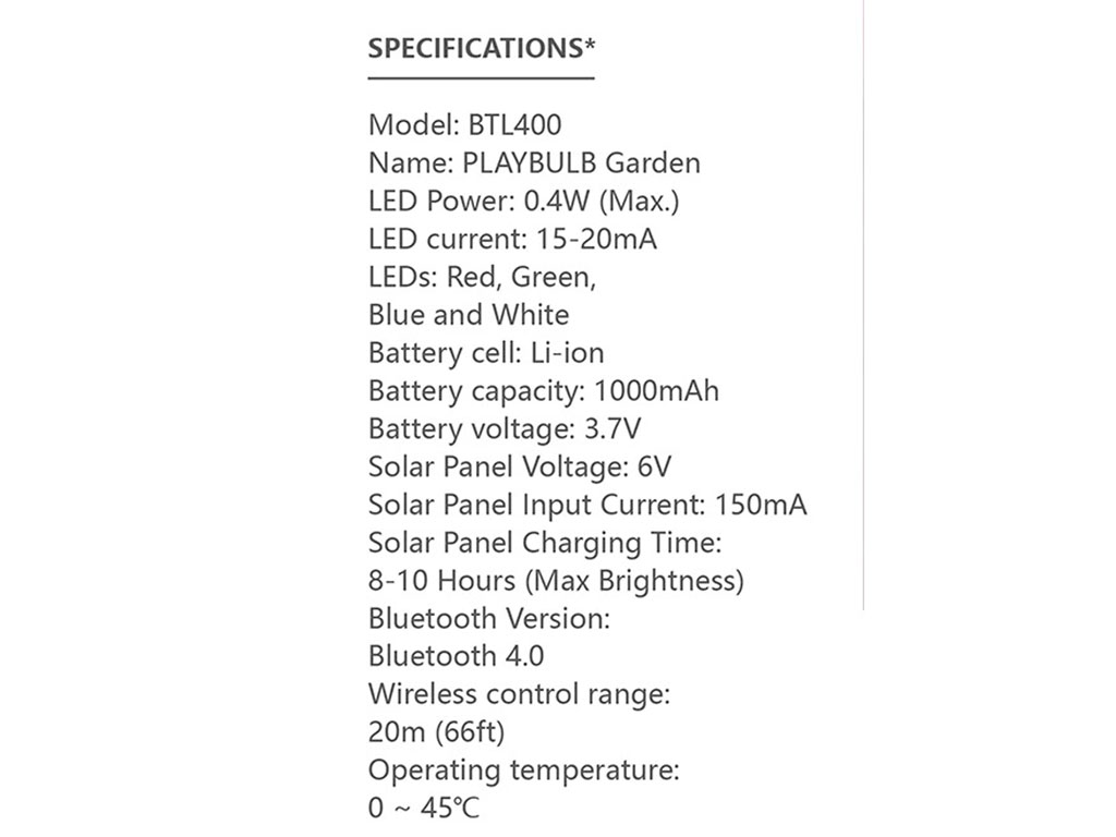 | پشتیبانی بلوتوث 4.0 از | iPhone 4S یا بالاتر، iPad 3 یا بالاتر، iPod نسل پنجم یا بالاتر، Android نسخه 4.3 یا بالاتر |